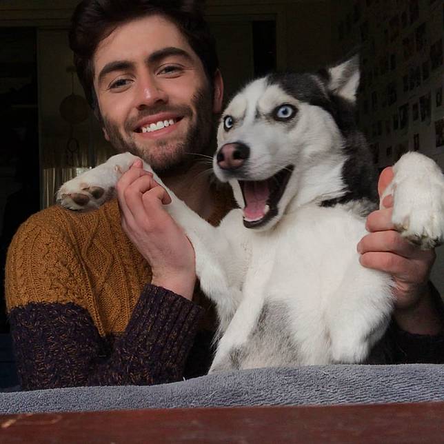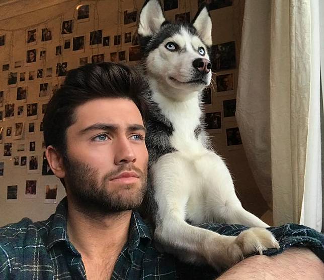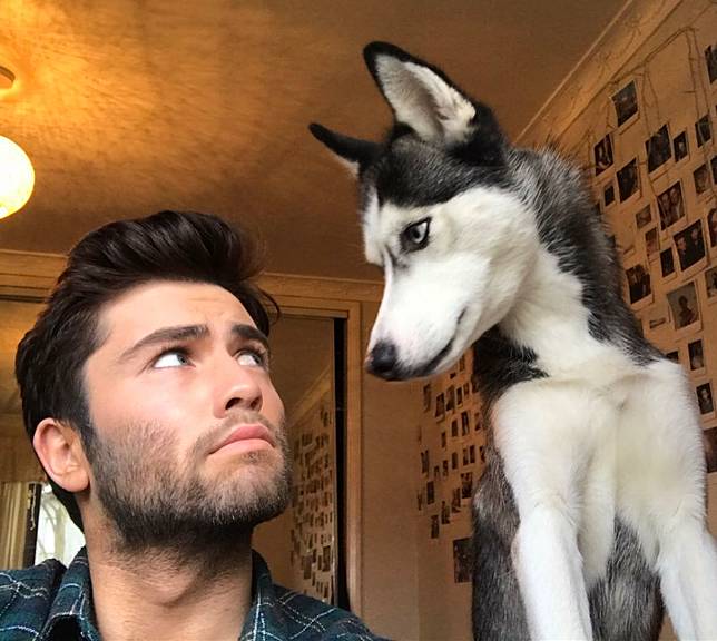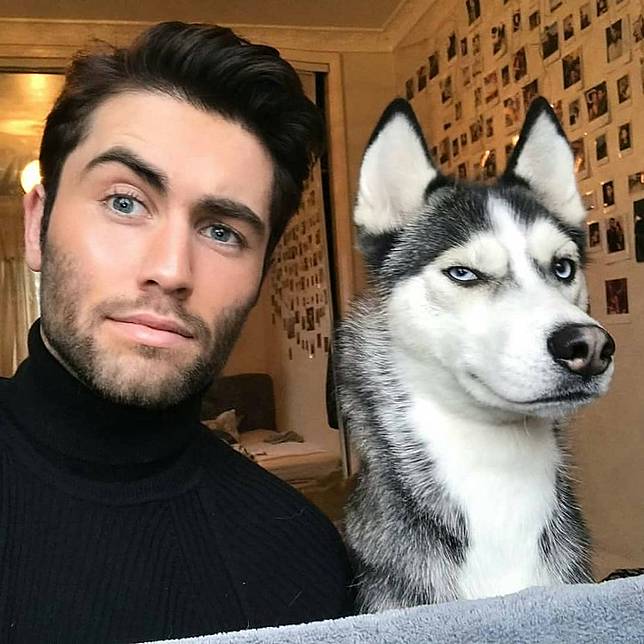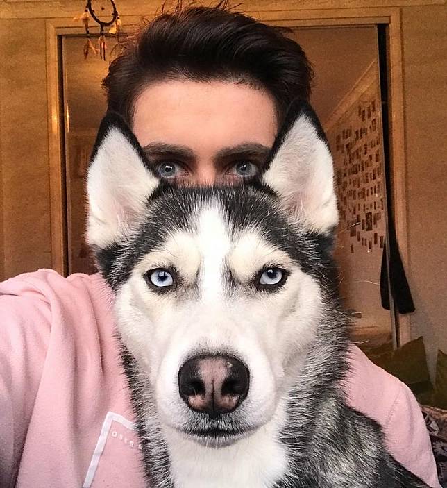 *1. Liam dan anjing jenis Huskynya ini kerap berfoto dengan ekspresi yang sama. *