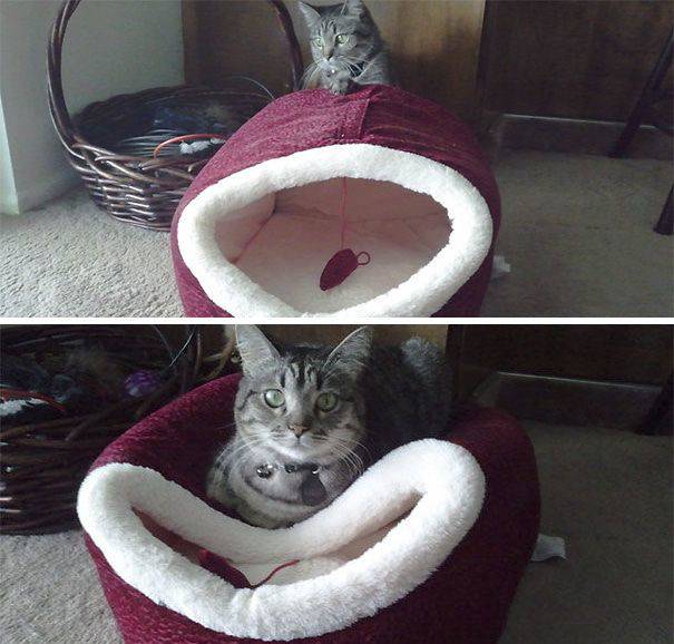 8. Sudah dibelikan tempat tidur, eh dia malah milih tidur di sana
