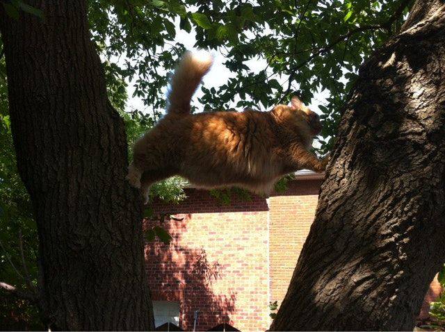 2. Sok-sokan atraksi di antara dua pohon, tapi dia gak bisa turun, enaknya diapain nih?