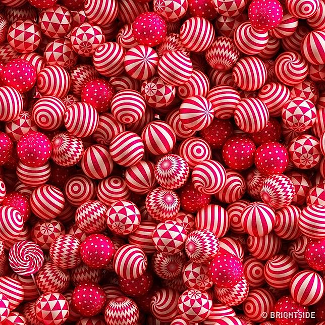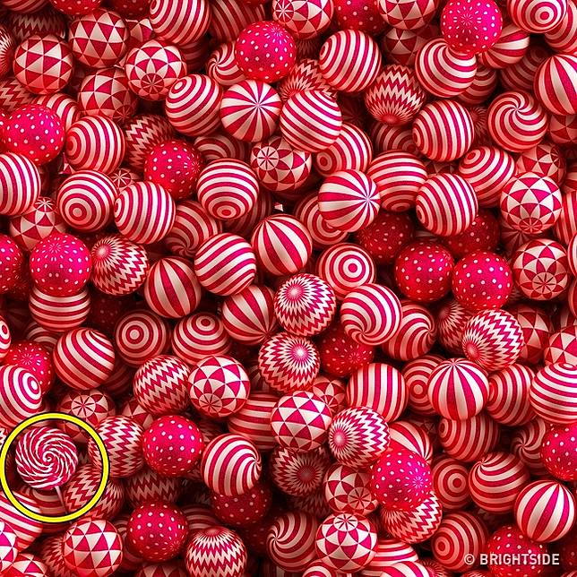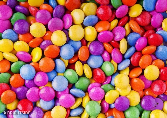 1. Di antara tumpukan permen warna-warni ini ada sebuah kancing. Bisa temukan?