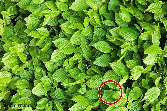 9. Hayo kamu bisa temukan belalang di dedaunan lebat ini?