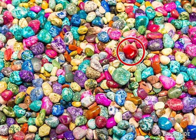 5. Temukan buah delima di antara batu warna-warni ini.