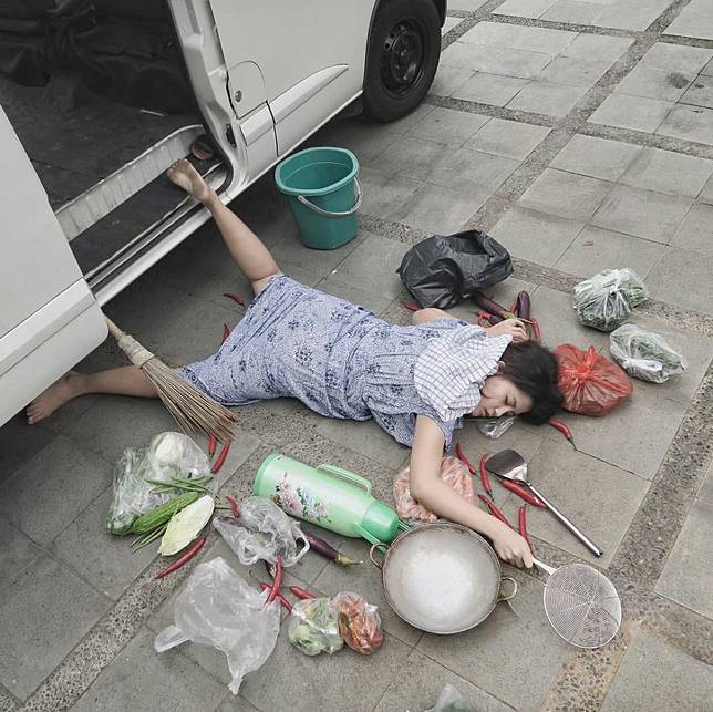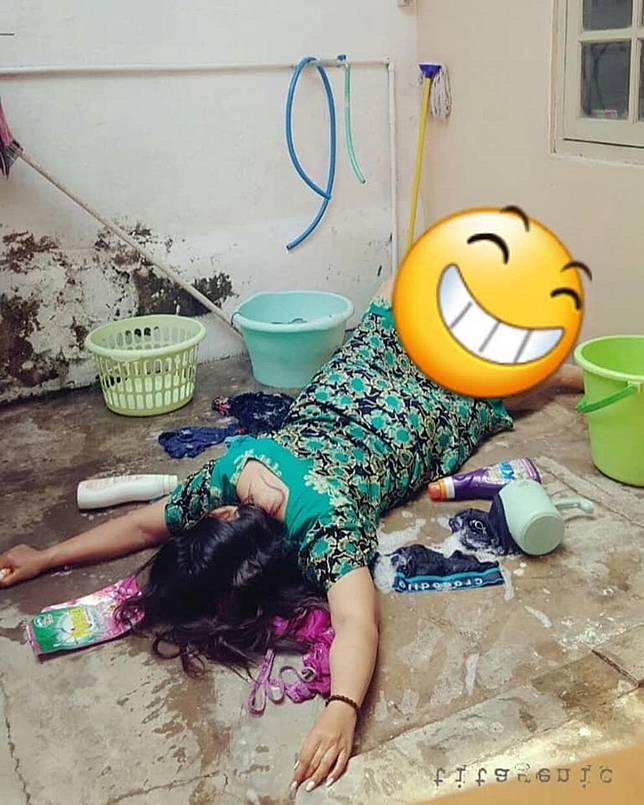 Namanya juga emak-emak, bukannya barang mewah atau makeup branded yang berantakan justru barang-barang dapur. Kocaknya lagi mereka menggunakan pakaian khas ala emak-emak, yaitu daster.