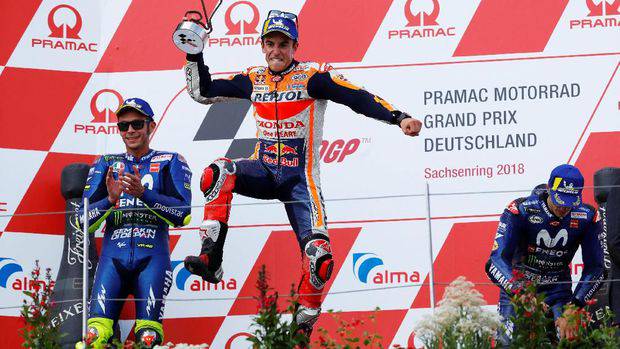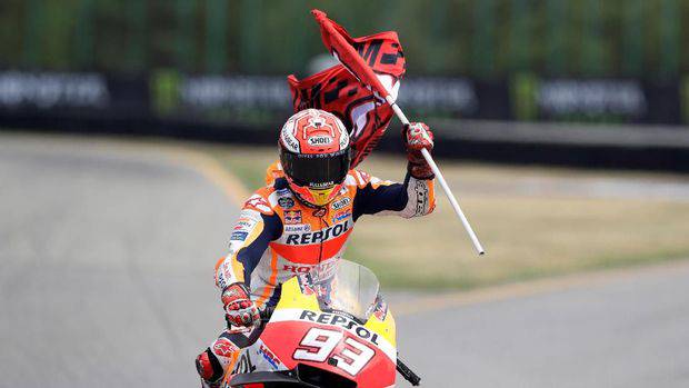Marc Marquez selangkah lagi merebut gelar juara dunia MotoGP kelimanya. (REUTERS/David W Cerny) Sementara itu Marquez tidak ingin bermain aman di MotoGP Jepang. Pebalap yang dijuluki The Baby Alien itu tetap berambisi meraih kemenangan di Motegi.