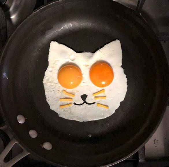 10. Lucu banget telur ceplok berbentuk kucing ini.