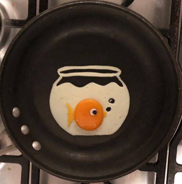 3. Telur ceplok menggambarkan ikan di dalam akuarium.