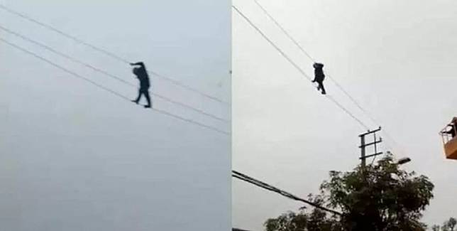 Kelakuan pria mabuk ini konyol, jalan di kabel listrik tegangan tinggi
